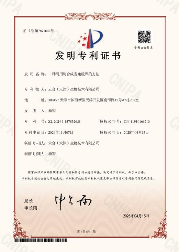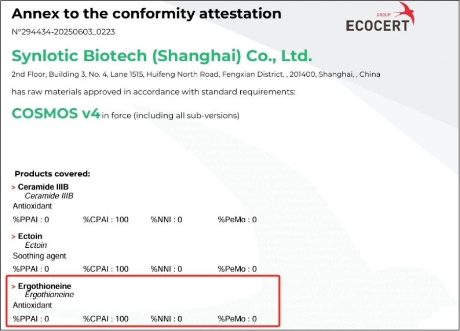 Shanghai Yunluo: Ergothione telah memperoleh sertifikasi COSMOS